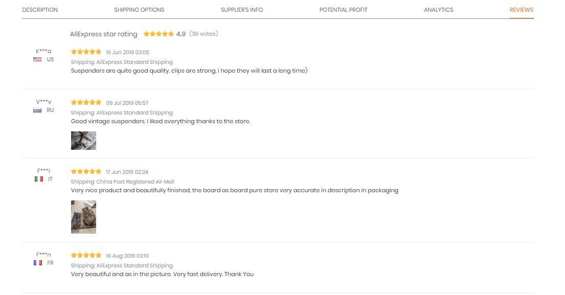Importing products from Bestsellers Insight database, you take real-life reviews of the previous buyers along with the general product information.